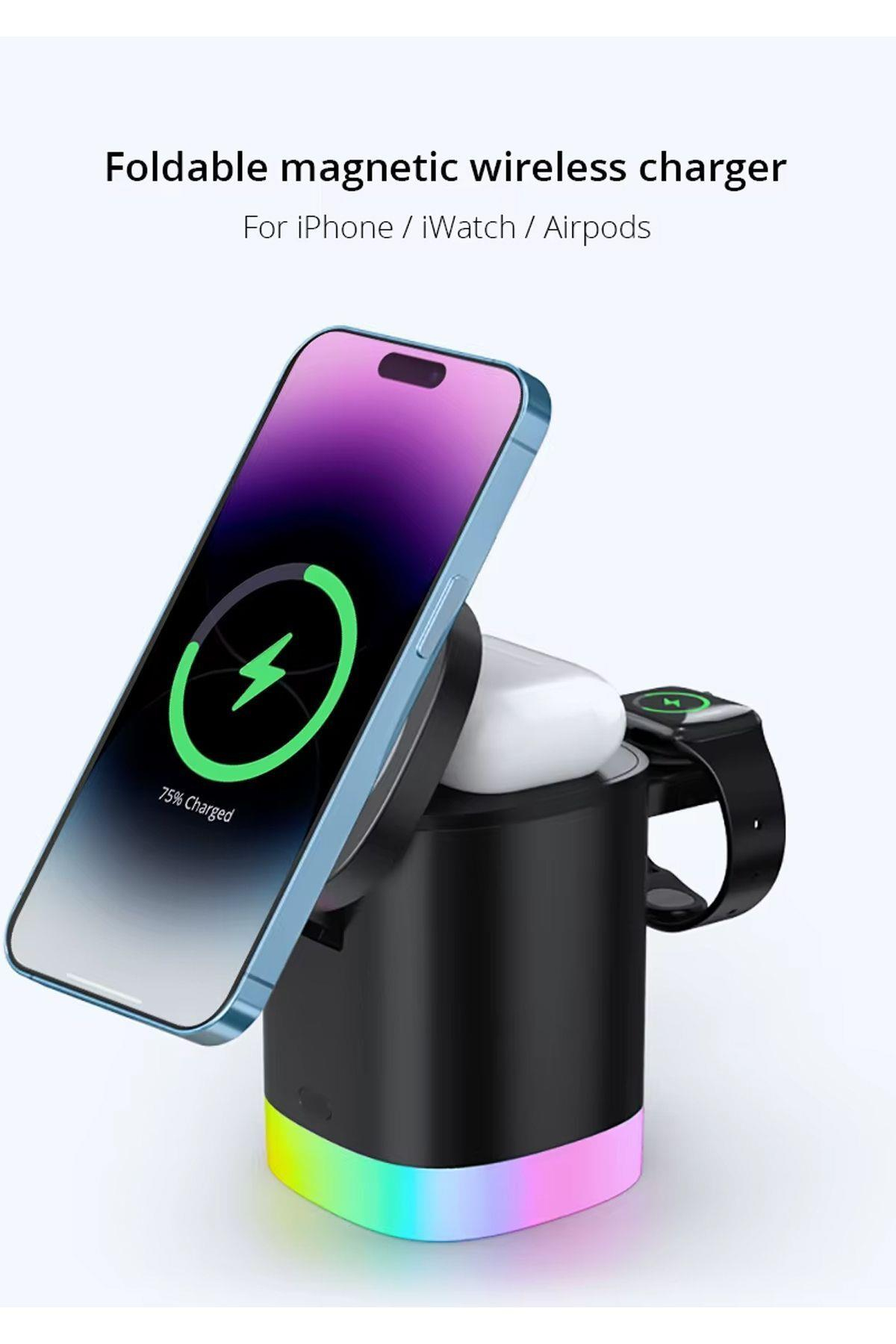 3in1 Magsafe Uyumlu 15w Rgb Kablosuz Şarj Standı Iphone Android Telefonlar, Apple Watch Saatler