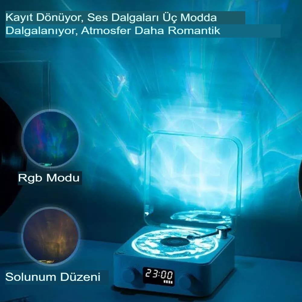 hoparlör kablosuz Bluetooth plakRetro pikap  Tarzı çalar Stereo ses RGB projeksiyon lambası etkili