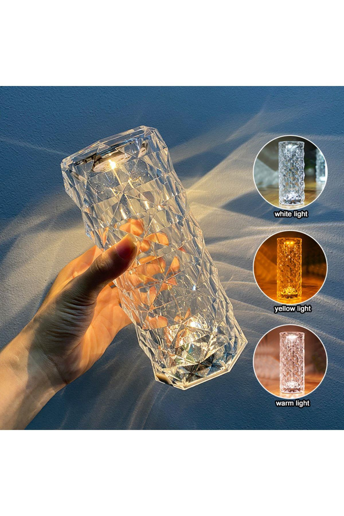 Okuma Işığı LED Çok Fonksiyonlu Dokunmatik Lamba İç Okuma Modu Işığı Gül ışınları kristal elmas masa lambası, şeffaf akrilik abajur, masaüstünüze güzel ışık desenlerini yansıtabilir.; LED ışık, titreme ve parlama yapmaz, düşük ısı, enerji tasarrufu ve çevre koruması.; ; Dokunmatik başucu lambası, üstte kontrol dokunma, açma/kapama ve ışık rengini değiştirmek için kısa basın, kısılabilir parlaklık için uzun.; ; 3 ışık rengi: sıcak ışık, doğal ışık ve soğuk beyaz, her biri farklı ihtiyaçlar için ayarlanabilir parlaklık.; ; Masa lambası dahili büyük kapasiteli mAh lityum pil, uzun süreli kullanım için şarj edilebilir.; Yatak odası, kahve dükkanı, çocuk odası ve diğer ev mobilyaları ve otel dekorasyonu için uygundur.; ; 3 RENK kristal pırlanta dekoratif masa lambası: Eşsiz 3D kesim teknolojisi ile yapılan elmas benzeri eşkenar dörtgen şeklindeki kristal masa lambası, modern ve lüks görünümüyle parlak ve renkli ışıkları yansıtır.; Oda, oturma odası, yemek odası, parti, romantik ve sıcak bir atmosfer yaratın, çocuklar, sevgililer veya arkadaşlar için doğum günü/Noel/Sevgililer Günü için romantik bir sürpriz hediye olarak mükemmel.; Şarj edilebilir kristal lamba: Masa lambaları, şarj ve deşarj işlemi için kullanılabilen yüksek kapasiteli dahili 1000 mAh pile sahiptir.; Yeni geliştirilmiş entegre USB şarj arayüzü tasarımı, güvenli ve sorunsuz şarj etmenizi sağlar (USB şarj kablosu dahildir), 3 saat şarj edildikten sonra 6-8 saat kullanılabilir ve tek şarjla tüm gece size eşlik edebilir.; ; Kristal Elmas Masa Lambası ve Dokunma Kontrollü Gece Lambası, EN SİGA markasının yenilikçi ve şık tasarımlarıyla ev dekorasyonunuza zarafet katıyor.; Bu çok fonksiyonlu LED lambalar, şeffaf akrilik abajurları sayesinde masaüstünüze büyüleyici ışık desenleri yansıtırken, titreme yapmayan ve düşük ısı yayan LED teknolojisi ile enerji tasarrufu sağlar.; Dokunmatik başucu lambası, üst kısmındaki kontrol paneli ile kolayca açılıp kapatılabilir ve ışık rengi değiştirilebilir.; Üç farklı ışık rengi seçeneği - sıcak ışık, doğal ışık ve soğuk beyaz - her türlü ihtiyaca uygun ayarlanabilir parlaklık sunar.; Bu masa lambaları, dahili büyük kapasiteli mAh lityum pilleri sayesinde uzun süreli kullanım için şarj edilebilir.; Yatak odası, kahve dükkanı, çocuk odası gibi çeşitli mekanlarda kullanılabilir ve otel dekorasyonuna modern bir dokunuş katar.; Eşsiz 3D kesim teknolojisi ile üretilen elmas benzeri kristal masa lambası, modern ve lüks görünümüyle dikkat çeker ve romantik bir atmosfer yaratır.; Çocuklar, sevgililer veya arkadaşlar için doğum günü, Noel veya Sevgililer Günü gibi özel günlerde mükemmel bir hediye seçeneğidir.; Şarj edilebilir kristal lamba, entegre USB şarj arayüzü ile güvenli ve sorunsuz bir şekilde şarj edilebilir.; 1000 mAh kapasiteli dahili pil, 3 saatlik şarj süresi sonrasında 6-8 saat boyunca kesintisiz kullanım imkanı sunar.; Bu özellikleriyle, masa ve gece lambası olarak günlük yaşamda pratik bir çözüm sunar.; EN SİGA'nın bu benzersiz ürünleri, hem estetik hem de fonksiyonel açıdan evinizin vazgeçilmez bir parçası olacak.