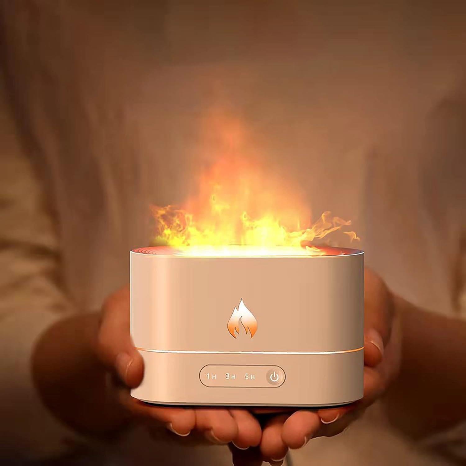250ml kapasiteli uçucu yağ aromatize edici difüzör, aynı zamanda bir LED ışıklı alev simülasyonu sunan USB hava nemlendirici olarak ev ve ofis gibi farklı ortamlarda kullanıma uygundur.